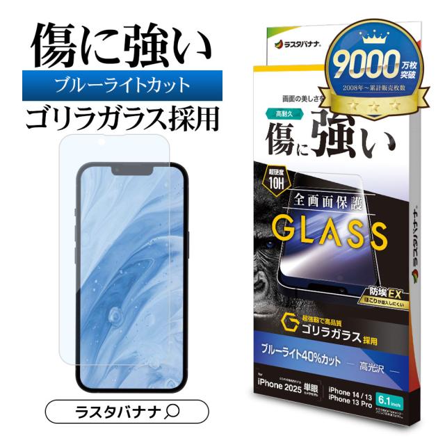 iPhone 16e iPhone14 13 Pro 13 ガラスフィルム 全面保護 ブルーライトカット 高光沢 ゴリラガラス採用 ホコリ防止 0.33mm 硬度10H アイフォン 保護フィルム GGE4712IP5E ラスタバナナ