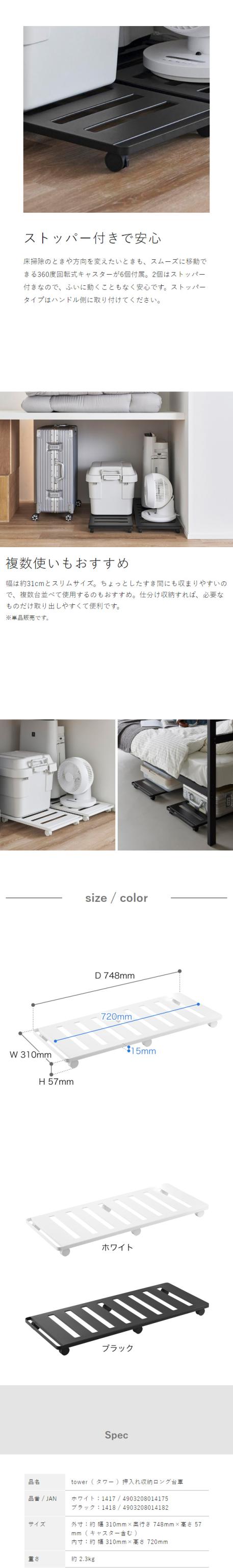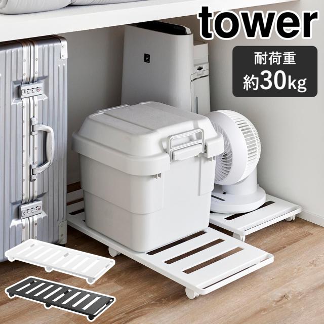 [ 押入れ収納ロング台車 タワー ]山崎実業 tower キャスター ベッド下収納 奥行75cm 耐荷重30kg 押入れ 平台車 収納 クローゼット 出し入れ すのこ状 台車 デッドスペース キャスター付き 北欧 おしゃれ yamazaki 公式 モノトーン ブラック ホワイト 1417 1418