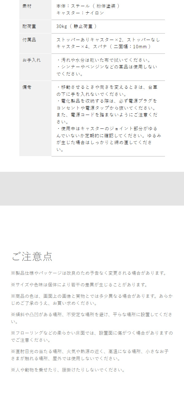 奥行き約75cmのロングサイズな台車は、押し入れやベッド下などの空間を無駄なく活用できます。耐荷重30kgで季節家電、オフシーズンの洋服を入れた衣類ケースなどの収納に活躍します。