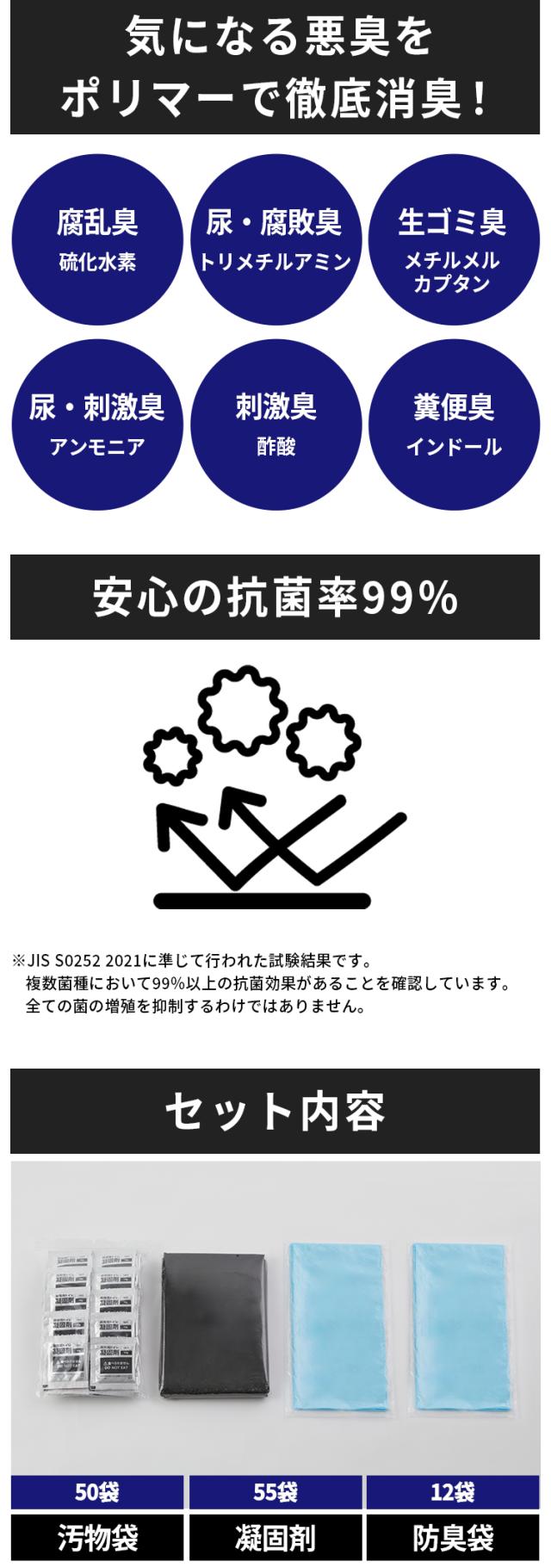 凝固剤×50、汚物袋×55、防臭袋×12(50回分)