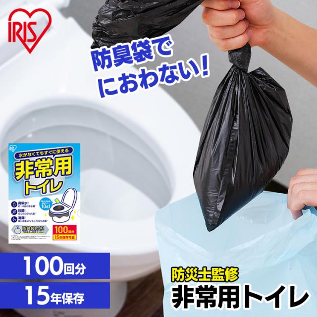 \防災士監修/簡易トイレ 100回 携帯トイレ 防災トイレ 非常用トイレ 災害用トイレ 防災 防災グッズ 凝固剤 アウトドア キャンプ 車 ポリマー 防臭袋 BTS10-100 アイリスオーヤマ *