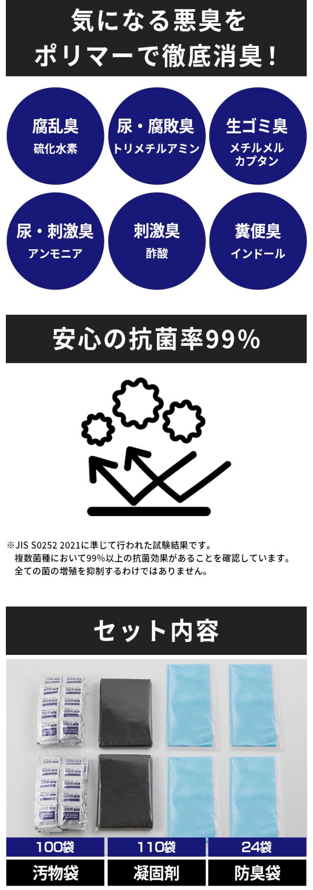 凝固剤×100、汚物袋×110、防臭袋×24(100回分)