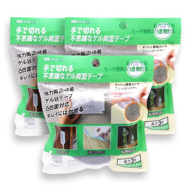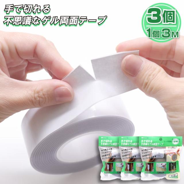 手で切れる不思議な ゲル両面テープ 透明 3個セット 強粘着 強力両面粘着 長さ3M