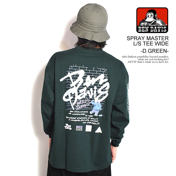 30%OFF SALE セール BEN DAVIS ベンデイビス SPRAY MASTER L/S TEE WIDE -D.GREEN- メンズ Tシャツ 長袖 ロンT atftps