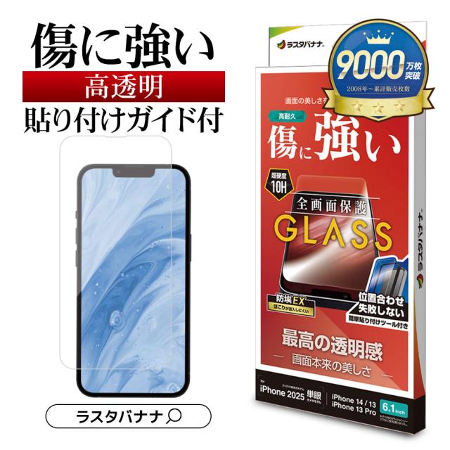 iPhone 16e iPhone14 13 Pro 13 ガラスフィルム 全面保護 高光沢 高透明 クリア ホコリ防止 0.33mm 硬度10H 貼り付けガイド枠付き アイフォン 保護フィルム GST4713IP5E ラスタバナナ