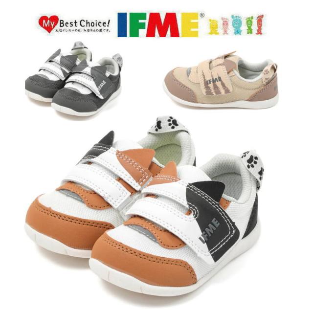 イフミー IFME 20-5305 ベビー キッズ スニーカー イフミー パーク ワンベルト ねこちゃん シューズ 子供靴 男の子 女の子 ローカット 通園 誕生履き かわいい おしゃれ ベルクロ 軽い 幅広 ベージュ グレー ホワイト 猫 幼稚園 保育園 12.5cm 13cm 13.5cm 14m 14.5cm 15cm