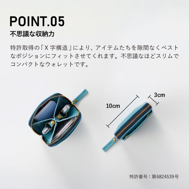 特許取得の「X字構造」が「ほぼ全部入る」を叶えます。スマートキー2個、カード、紙幣、アナログキー3本をコンパクトに収納。小さすぎず、機能と使い勝手を最優先にデザイン。サイズは、パンツの後ろポケットにもちょうど良いおよそ10cm×10cm。シンプルな構造で、中を一目で見渡せるから、見つける、支払う、使う、しまうを一瞬で。小物いっぱいのストレスから解放。お手元に届いたその日からちょっと便利な暮らしが始まります。
