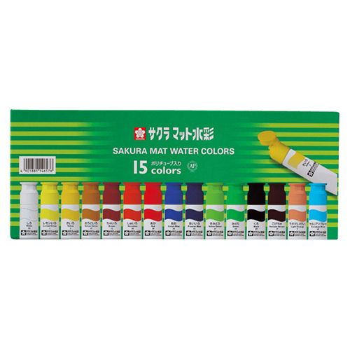 サクラクレパス マット水彩15色 ポリチューブ入12ml MW15PE(65752) SAKURA サクラ 水彩絵の具 水彩絵具セット デザイン用品 画材 水彩絵具 えのぐ 学童用品 学校