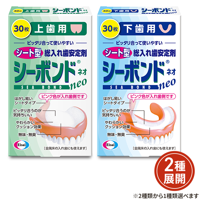[2種類から1種類選択] シーボンドネオ 上歯用・下歯用 30枚 エーザイ 総入れ歯安定剤