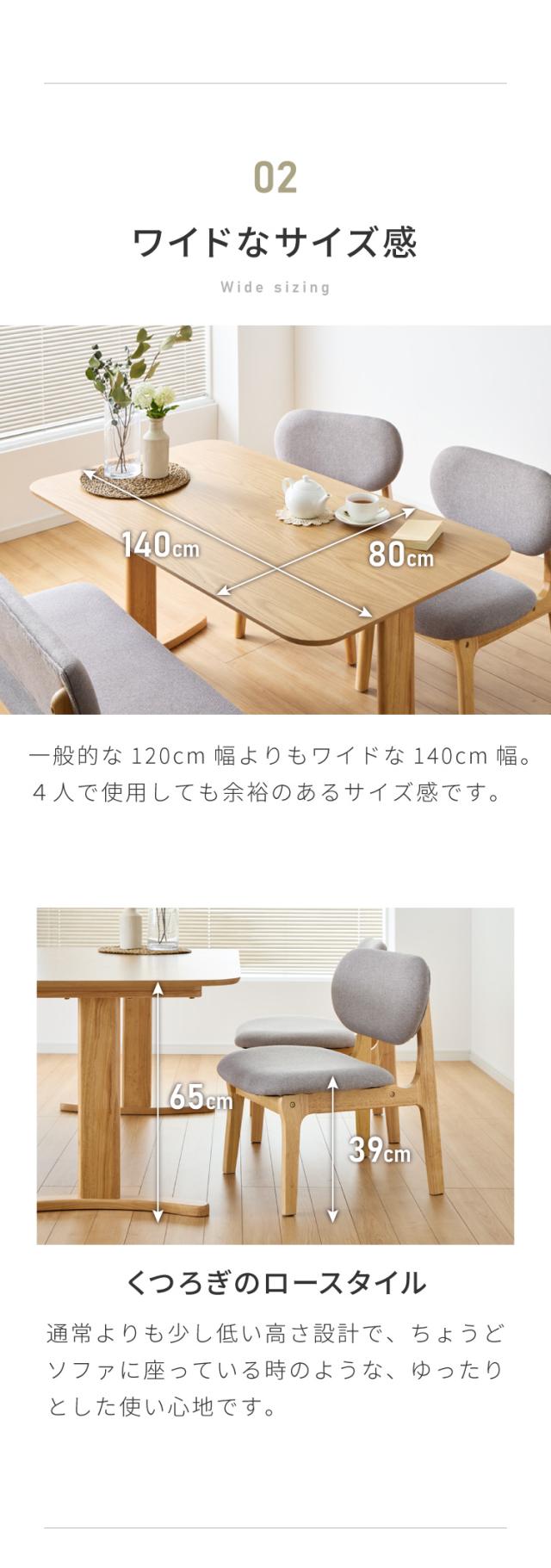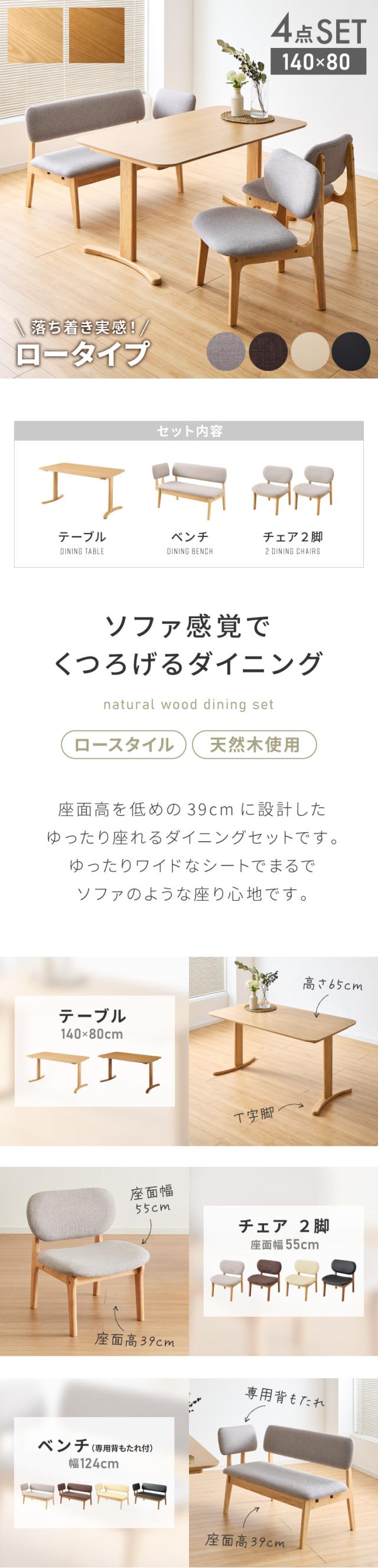 座面高39cm ゆったりダイニングチェア 4点セット 専用背もたれ付き 4人掛け 140×80cm ダイニングテーブル 高さ65cm 天然木 オーク突板 ダイニングセット ロータイプ ダイニングチェア(代引不可)
