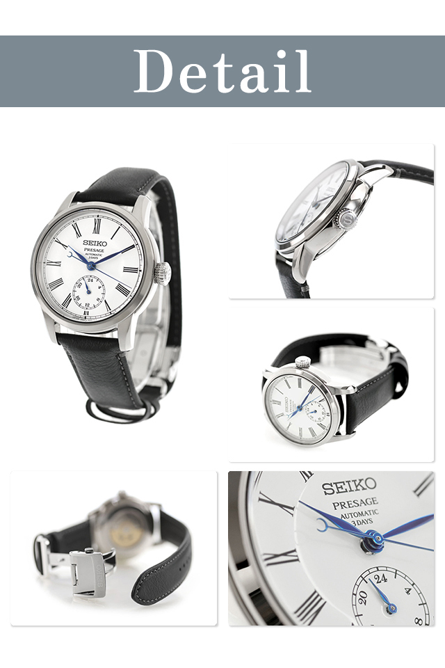正規品 7年保証キャンペーン 送料無料 セイコー プレザージュ 琺瑯ダイヤル コアショップ専用モデル 流通限定モデル 日本製 メンズ 腕時計 SART009 SEIKO PRESAGE Craftsmanship Series アナログ ホワイト ブラック 黒 ◆琺瑯ダイヤルモデルで初めてキャリバー6R5Hを用いた、ローマ数字のモデルが登場。SEIKO創世記の懐中時計「タイムキーパー」をオマージュした琺瑯ダイヤルモデルをリニューアル。6時位置に24時針を備えたキャリバー6R5Hを採用し、ダイヤルの目盛りに新たにミニッツレールを用いてエレガントさを強調しています。永く色褪せない美しい琺瑯の白色と、ふっくらと厚みのある黒のローマ数字のコントラストを効かせたプレザージュを象徴するデザインを継承。艶やかな白い琺瑯が引き立つ黒の牛皮革ストラップを採用しています(LWG認証レザー)。 発売日:2025年2月発売 機械式腕時計