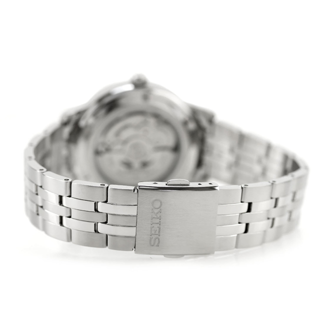 正規品 7年保証キャンペーン 送料無料 セイコーセレクション Sシリーズ メカニカル 日本製 メンズ 腕時計 SCVE061 SEIKO SELECTION INTERNATIONAL LINE アナログ ブラック 黒 ◆スタンダードで加飾のないシンプルなケースに、ドレッシーな印象の質感高い多列バンドを組み合わせたウオッチが登場。視認性の良さを考慮し、存在感ある略字と、スマートで洗練された印象のドルフィン針を採用しています。カレンダー付、秒針停止機能のついたムーブメントを採用し、実用性も抜群です。シンプルなデザインで、カジュアルからビジネスまでシーンを問わずお使いいただけます。誕生日や記念日のプレゼントにもおすすめです。 発売日:2025年2月発売 機械式腕時計