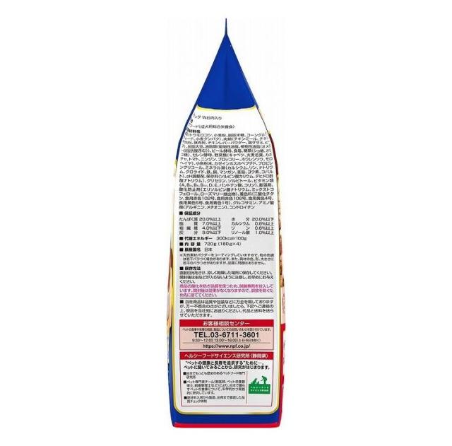 たんぱく質20.0%以上、脂質7.0%以上、粗繊維4.0%以下、灰分9.0%以下、水分20.0%以下、カルシウム0.8%以上、リン0.6%以上、リノール酸1.0%以上
