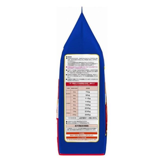 たんぱく質20.0%以上、脂質7.0%以上、粗繊維4.0%以下、灰分9.0%以下、水分20.0%以下、カルシウム0.8%以上、リン0.6%以上、リノール酸1.0%以上