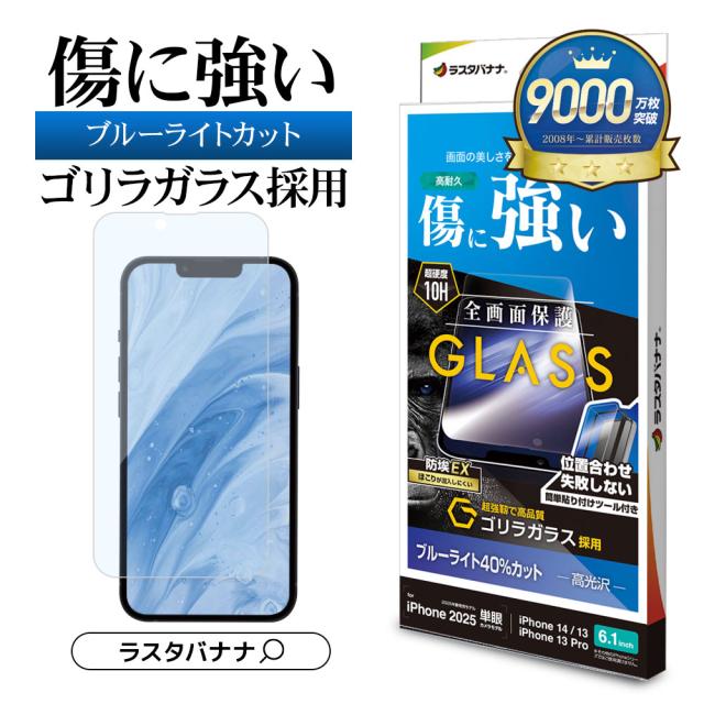 iPhone 16e iPhone14 13 Pro 13 ガラスフィルム 全面保護 ブルーライトカット ゴリラガラス採用 ホコリ防止 0.33mm 硬度10H 貼り付けガイド枠付き アイフォン 保護フィルム GST4720IP5E ラスタバナナ