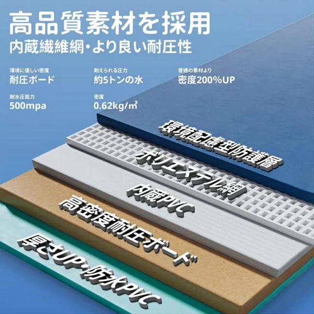 プールはPVC複合素材で作られております。内側には滑り止め加工がされているので、安心して子供や愛犬を遊ばせられるプール 大型です。PVC複合素材の生地は最先端の技術で耐摩耗性と防水性が高いため、愛犬がツメで引っかいてもやぶれにくい!