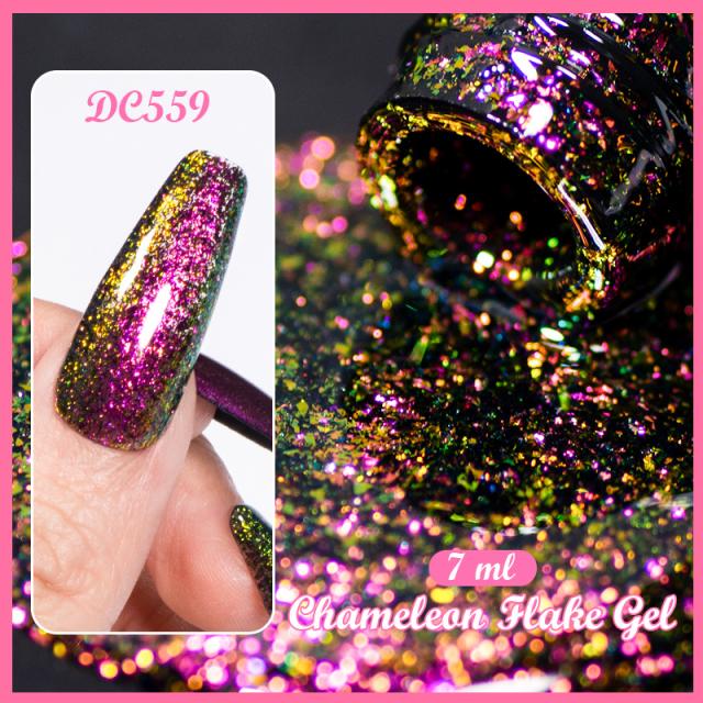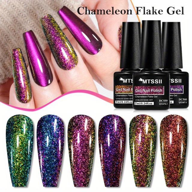 カメレオン グリッタージェルネイルポリッシュ - 7ml スパークリングフレーク、鉛フリー&無香料、半永久UVソークオフバニッシュ、手足&爪用