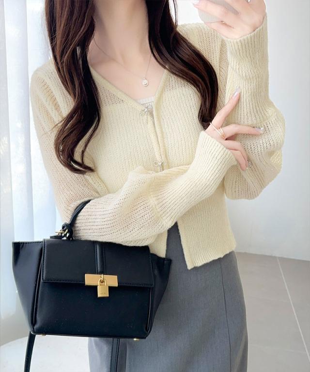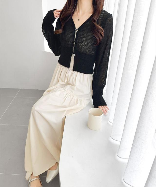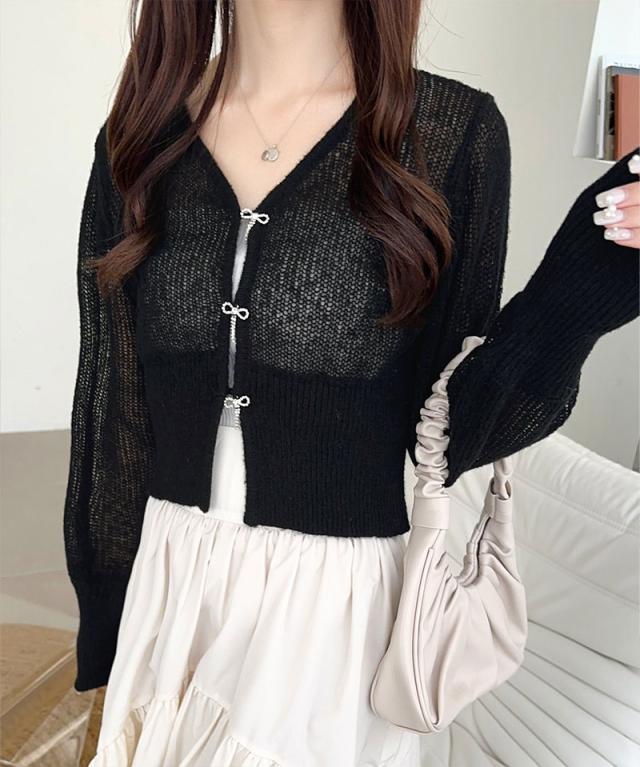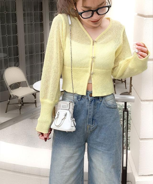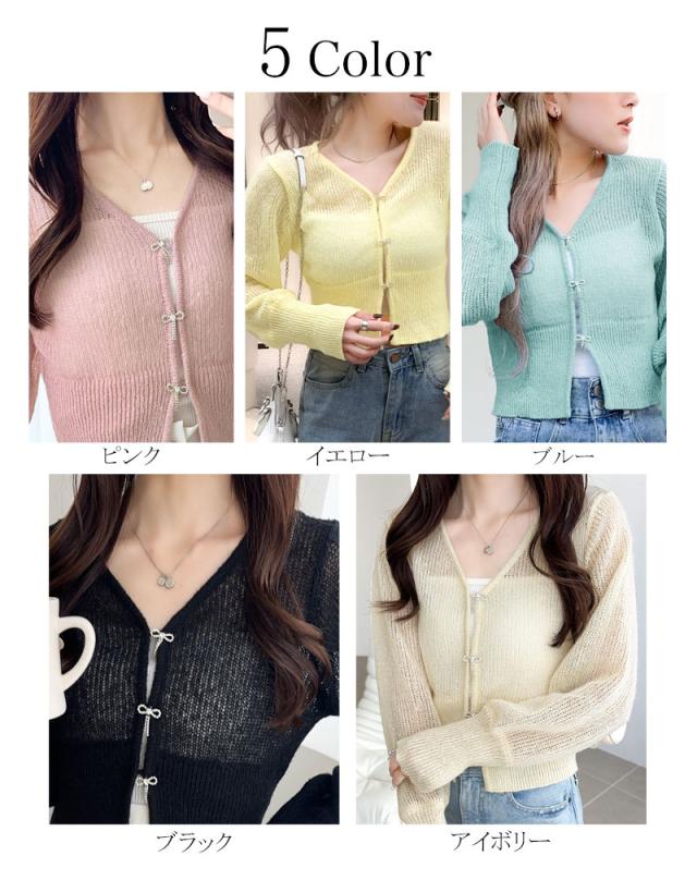 軽やかな透かし編みとリボンボタンで、春夏のおしゃれを格上げ!
