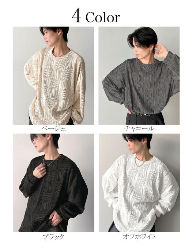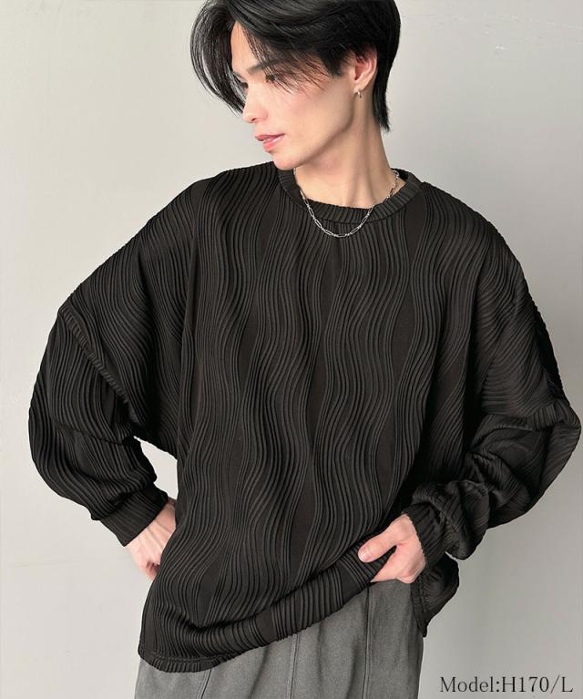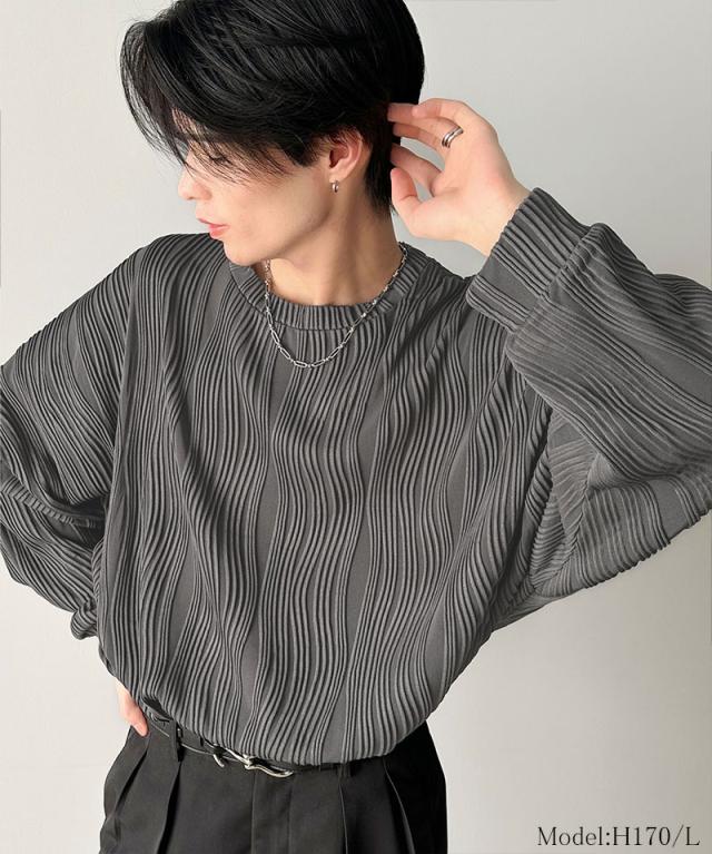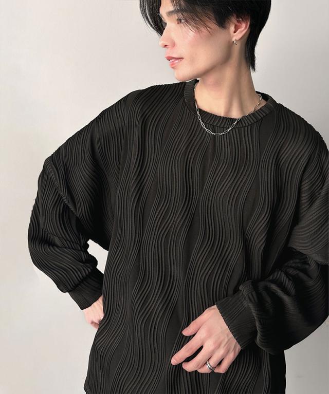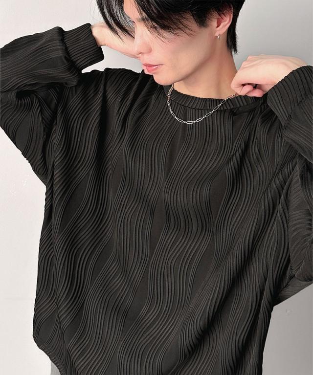 クラシカルエルフ冬新作 トップス Tシャツ メンズ ゆるっと オーバーサイズ ウェーブ 柄 ジャガード 素材 長袖 プルオーバー ドロップショルダー モモンガ袖 大きいサイズ 2025ss cm1010428