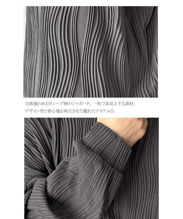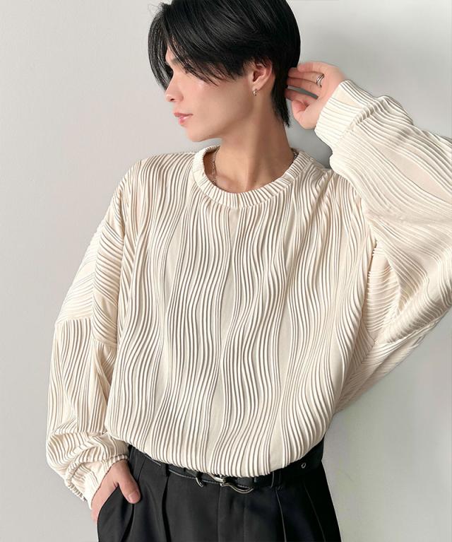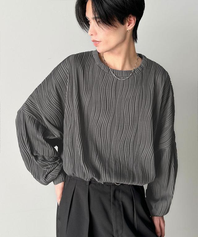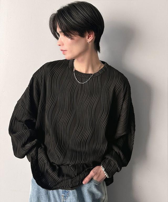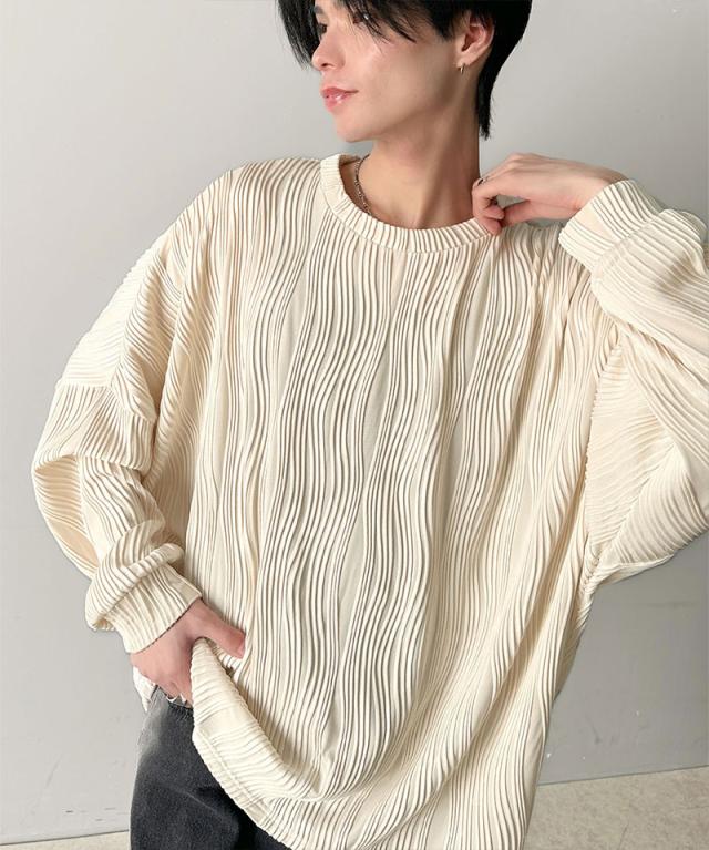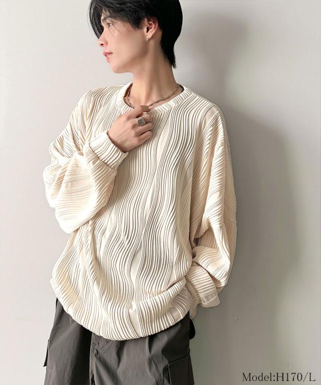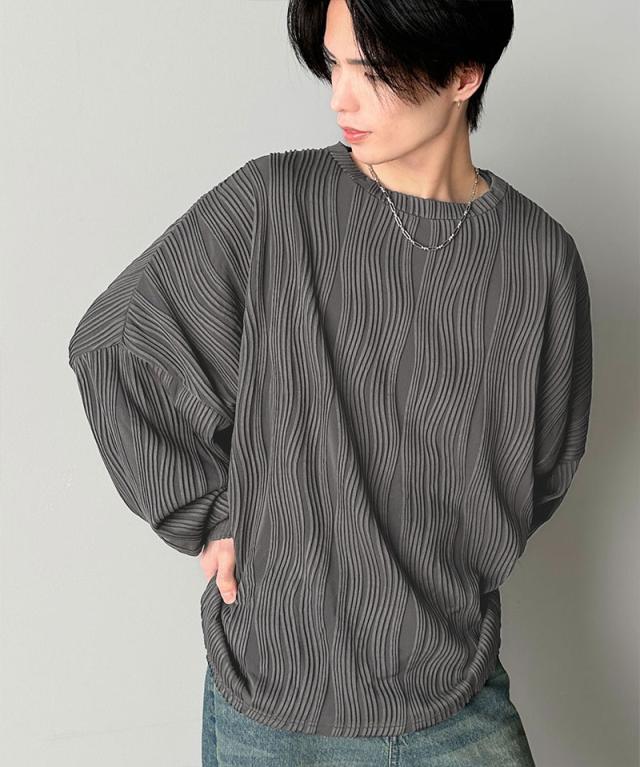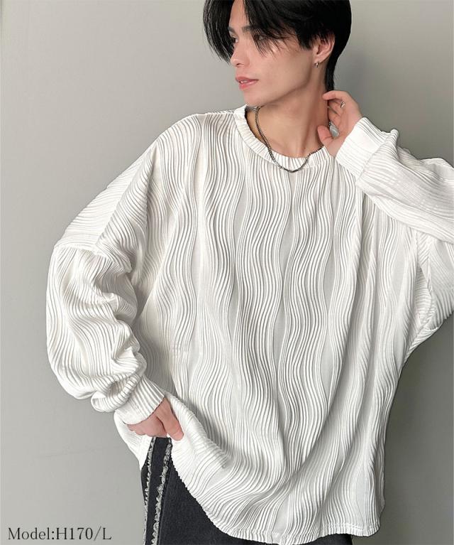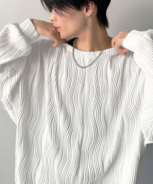 ★ゆるさとスタイリッシュを両立。オーバーサイズウェーブ柄ジャガード長袖Tシャツ★