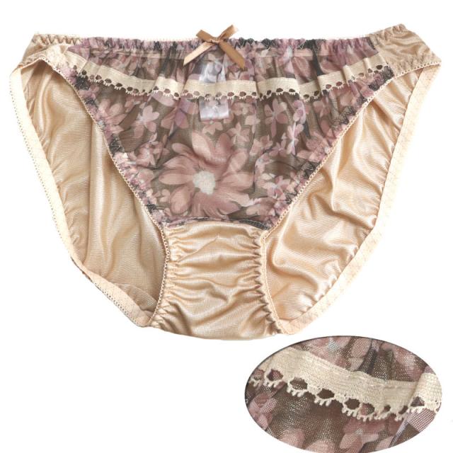 ショーツ レディース Lサイズ モカ ブラウン 花柄 刺繍 フラワー レース インナー 女性用 レディス スタイルアップ
