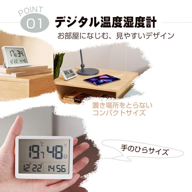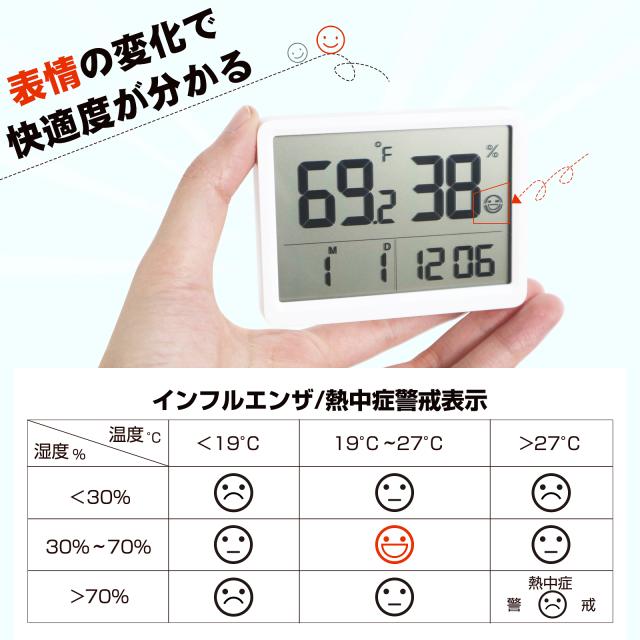 デジタル温湿度計 温湿度計 デジタル ベビー 温度計 おしゃれ 高精度 日付 時計 湿度計 かわいい 快適度顔表示付 赤ちゃん シンプル 大画面 手のひら 感染症 乾燥 熱中症対策 卓上 室内 リビング サイズ スタンド マグネット