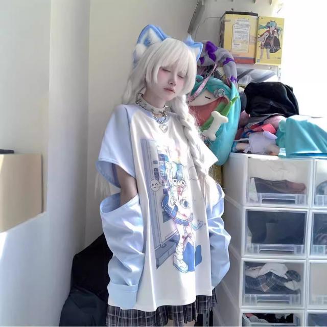 取り外し可能な2way袖の、かわいいキャラクター柄のTシャツ。