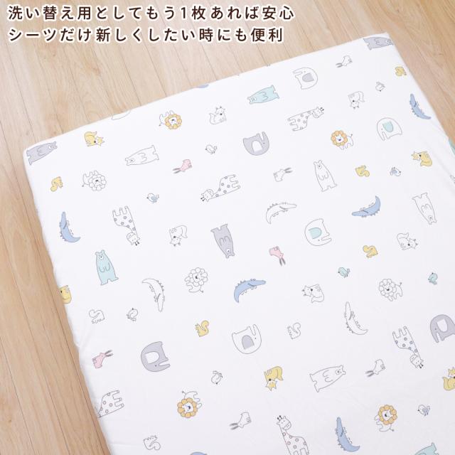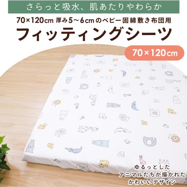 フィッティングシーツ 70×120cm 北欧アニマル ベビー レギュラーサイズ 吸水加工 円周ゴム ホワイト 白 動物 赤ちゃん 出産 洗い替え 出産準備 un doudou メール便発送(ポスト投函) NP