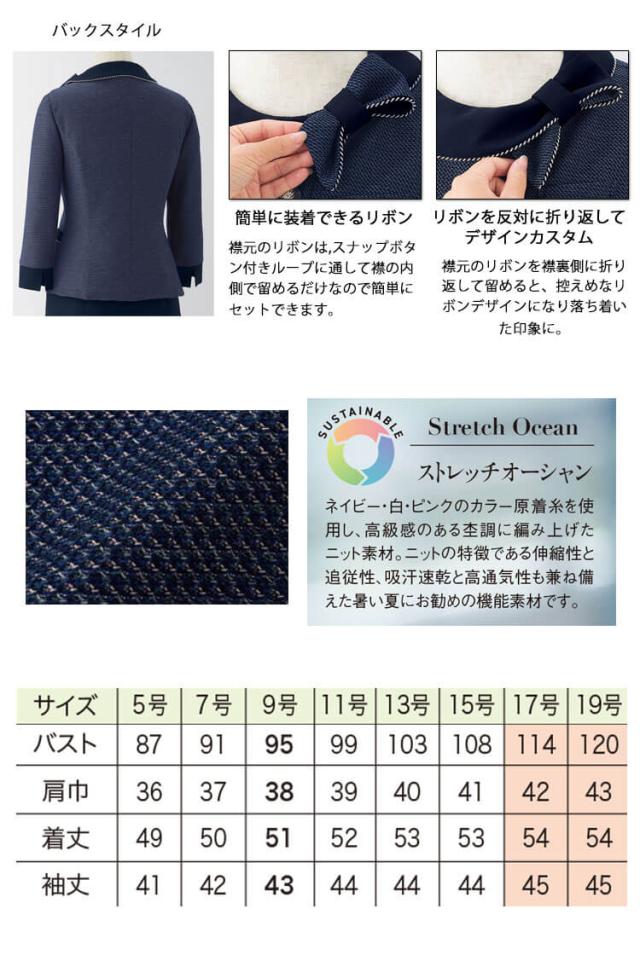 事務服 制服 接客 ユニフォーム 美シルエット en joie アンジョア 七分袖オーバーブラウス 26775 サイズ5号〜15号 ストレッチオーシャン