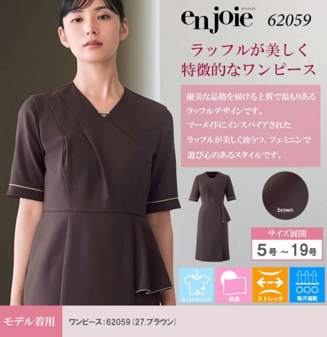 クリニック 施術 受付 美容医療 サロン 制服 ユニフォーム en joie アンジョア ワンピース 62059 サイズ5号〜15号 2025年春夏新作 マーメイドスタイル