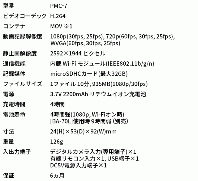 本製品は小型カメラ[PMC-3シリーズ]の専用モバイルレコーダーです。カメラは付属しておりません。また、他の機器には対応しておりません。