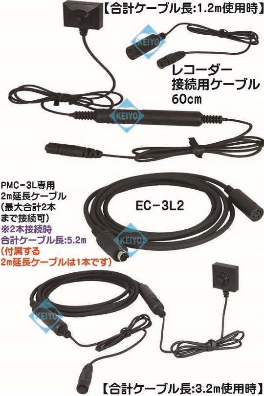 ■PMC-3L+PMC-7セット | ケーブル長3.2m仕様フルHDネジ・ボタン擬装小型カメラ&タッチパネル液晶搭載Wi-Fi機能付きモバイルレコーダーセット