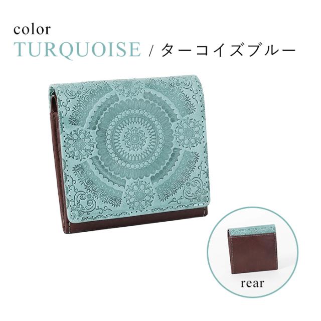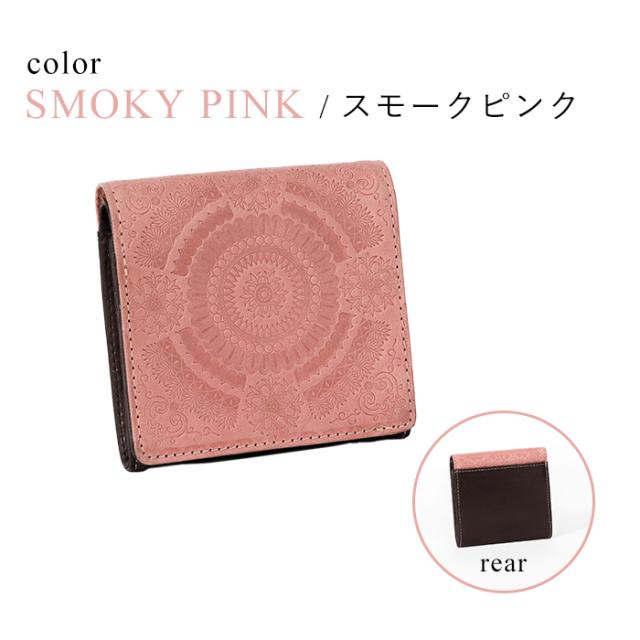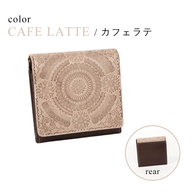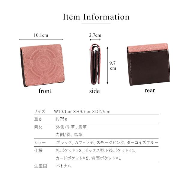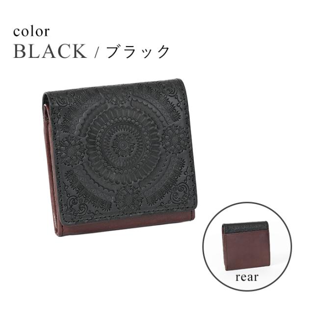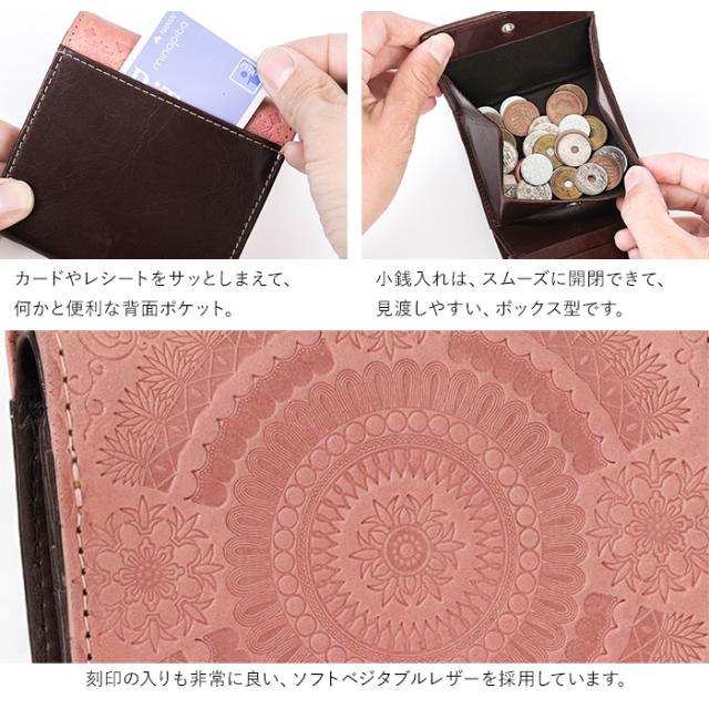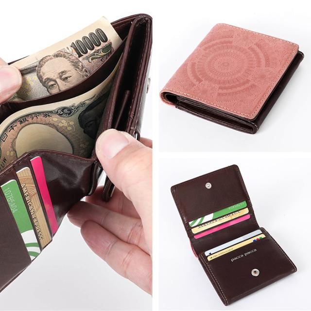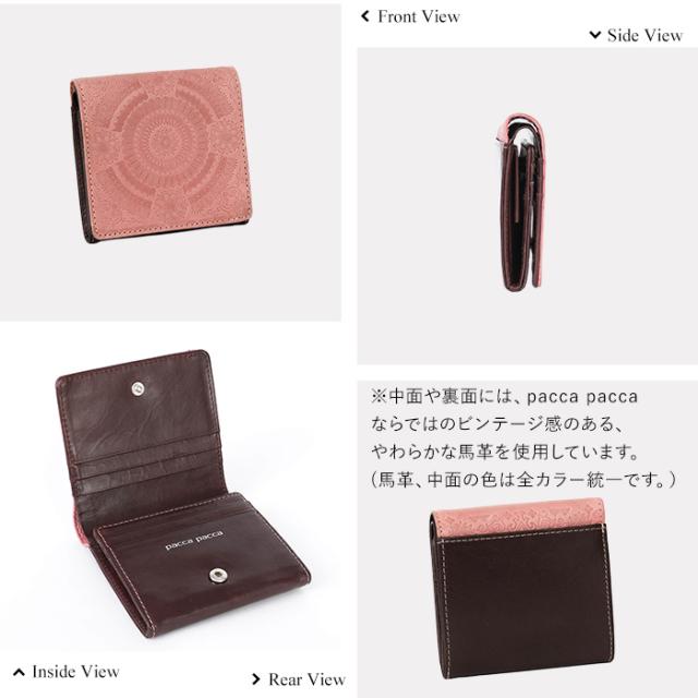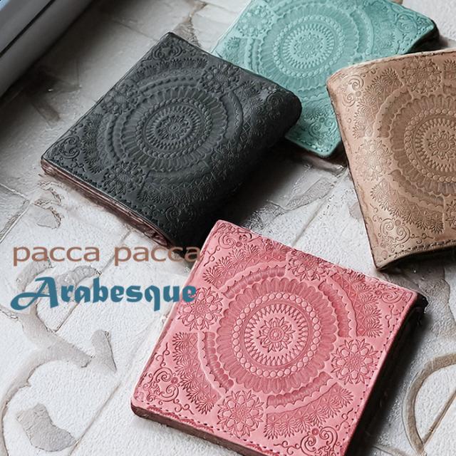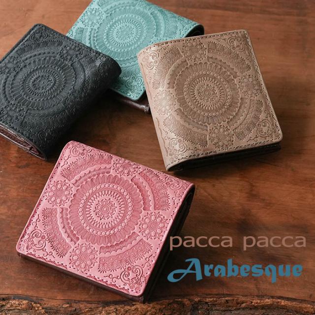 pacca pacca アラベスク 二つ折り財布 コンパクト財布 ボックス型小銭れ 小型 牛革 馬革 本革 型押し 総柄 小さい 経年変化 おしゃれ 模様 柔らかい メンズ レディース プレゼント ギフト
