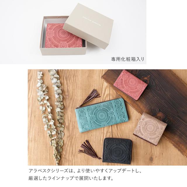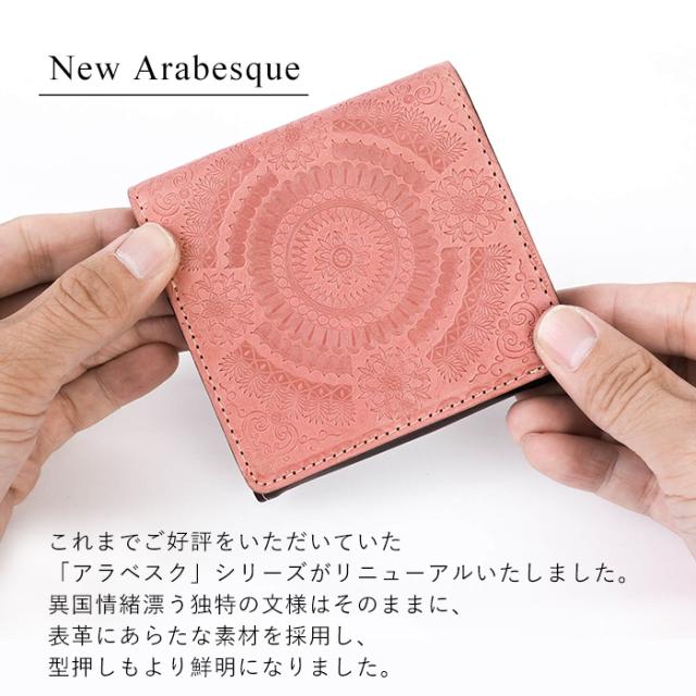 コンパクトな二つ折り財布は、アラベスクシリーズにあらたに加わった、