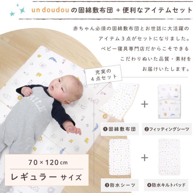 固綿敷布団4点セット ベビー レギュラーサイズ 70×120cm厚み6cm 北欧アニマル ホワイト 白 動物 二つ折り 洗える ベビーマットレス 敷きふとん かため お昼寝マットレス 出産準備 ギフト un doudou