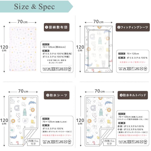 固綿敷布団とフィッティングシーツ/防水シーツ/防水キルトパッドがセットになりました。