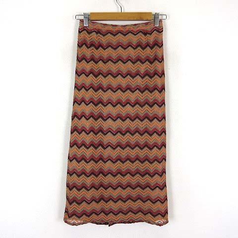 【中古】アルシーヴ archives スカート ニット タイト かぎ編み ジグザグ ボーダー柄 配色 ミモレ丈 S マルチカラー