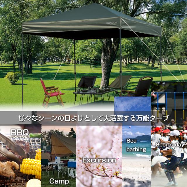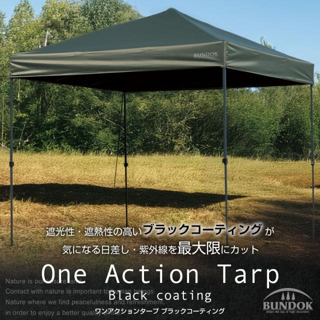 送料無料 ワンアクションタープ 300cm ブラックコーティング/BUNDOK(バンドック)/BDK-137/ワンタッチ タープ テント 日除け 熱中症 日よけ ブラックコーティング 遮光 遮熱 UVカット UPF50+ 300cm 3m スチール 遮光