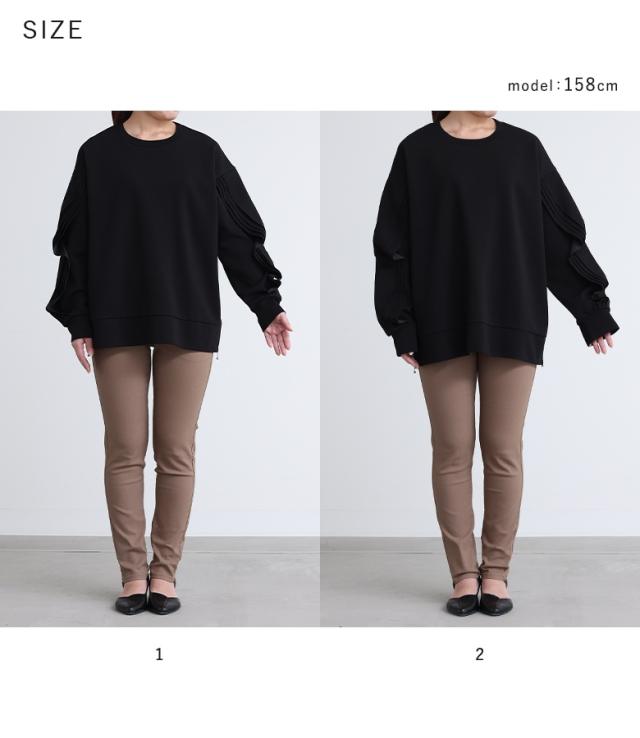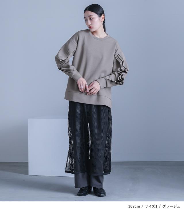 ■デザイン 4枚の生地を重ねた動きのあるフレア袖が特徴のスウェット。サイドファスナー付きで自由に開閉が可能です。開けるとスリットが入ったようなデザインになり、コーデのアクセントになります。 ■コーディネート 個性的なデザインながらもベーシックなカラー展開で、様々なコーディネートに合わせてご着用いただけます。デザイン性のあるボトムスと合わせてモードな印象に、女性らしいスカートと合わせて程よく柔らかい印象に、その日の気分に合わせてお好みのスタイリングを楽しむことができます。 ■素材 もちっとした触り心地のダンボールニット素材を使用。さらりとした肌触りで快適にご着用いただけます。しっかりとした厚みがあり、季節の変わり目や少し肌寒さを感じる季節におすすめの生地感です。 |