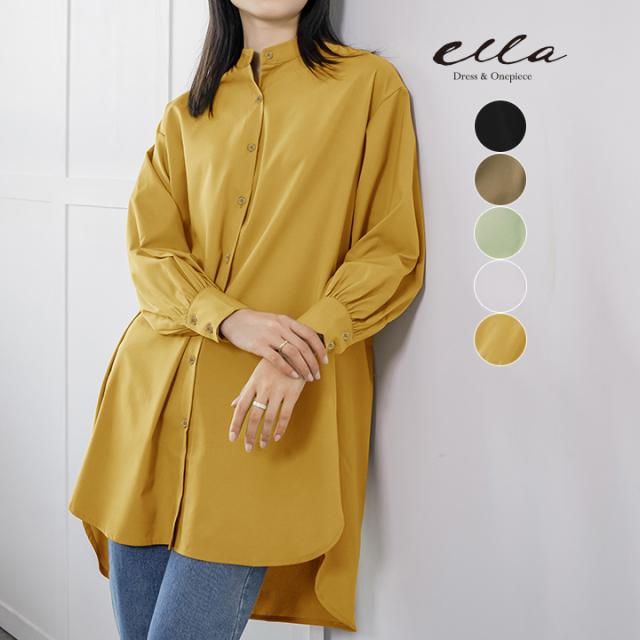 トップス レディース カジュアル シャツ バンドカラーシャツ バンドカラー ロング丈 着痩せ 大きめ 大きいサイズ スリット シルエット ゆったり ゆとり シンプル 無地 大人可愛い 大人カジュアル やわらか 落ち感 長袖 春 秋 冬 体型カバー 二の腕カバー リラックス カフス 華奢見え ビックシルエット 10代 20代 30代 40代 50代 ブラック 黒 ブラウン 茶色 グリーン 緑 ホワイト 白 イエロー 黄 M L 9号 11号 rt9210
