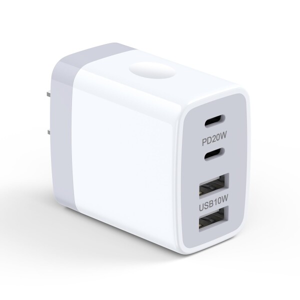充電器 (30W 2*USB-C+2*USB-A) ACアダプター iPhone/Android iPhone16-8シリーズ/iPadシリーズ/GalaxyS25-S10シリーズ/Google Pixelシリーズ/AirPodsなどに対応 ブラック X515 ホワイト