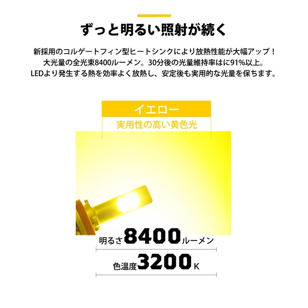 ピカキュウ,LED MONSTER L8400 FOG LAMP KIT,LEDモンスターL8400フォグランプキット,3200K,爆光,良配光,カットライン,超爆光,明るい,汎用,キット,国産車,日本製の車,黄色,激光,車検対応