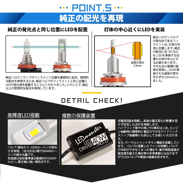 ピカキュウ,LED専門店ピカキュウ,LED MONSTER L8400 FOG LAMP KIT,LEDモンスターL8400フォグランプキット,3200K,爆光,良配光,カットライン