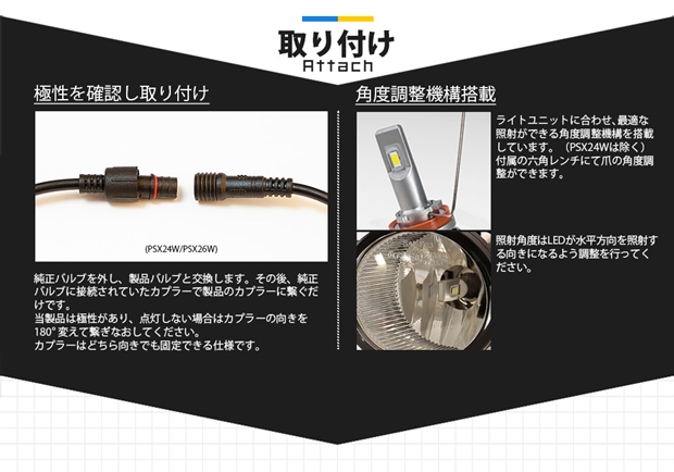 | ◆本製品は、純正白熱球と交換できるLEDバルブです。純正LEDフォグランプには取り付けが出来ません。 | |