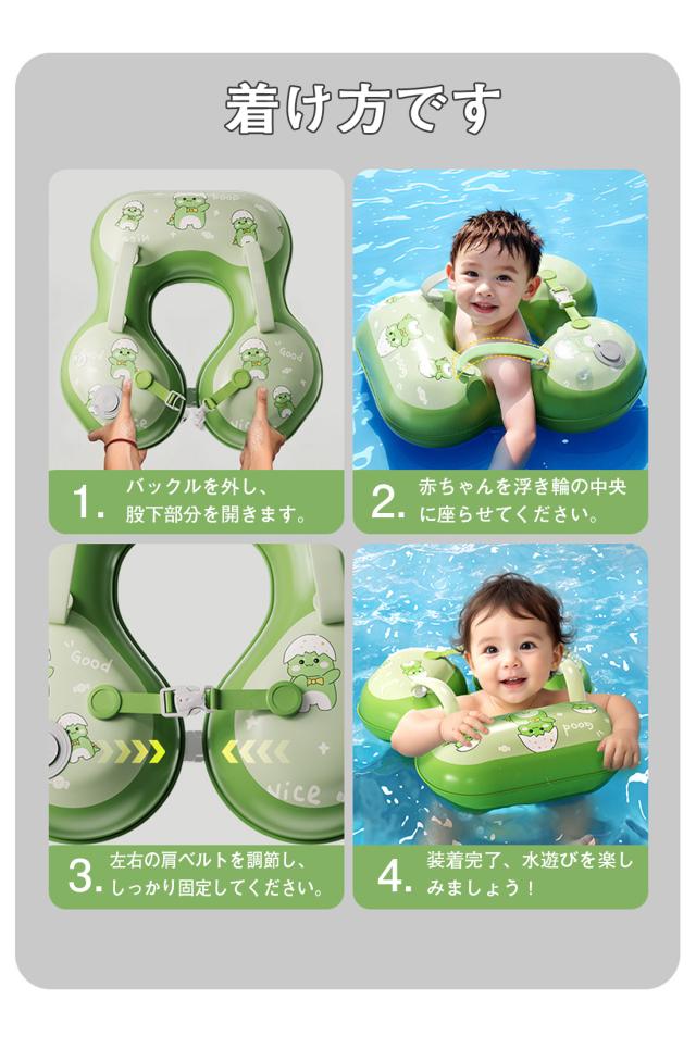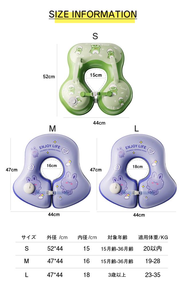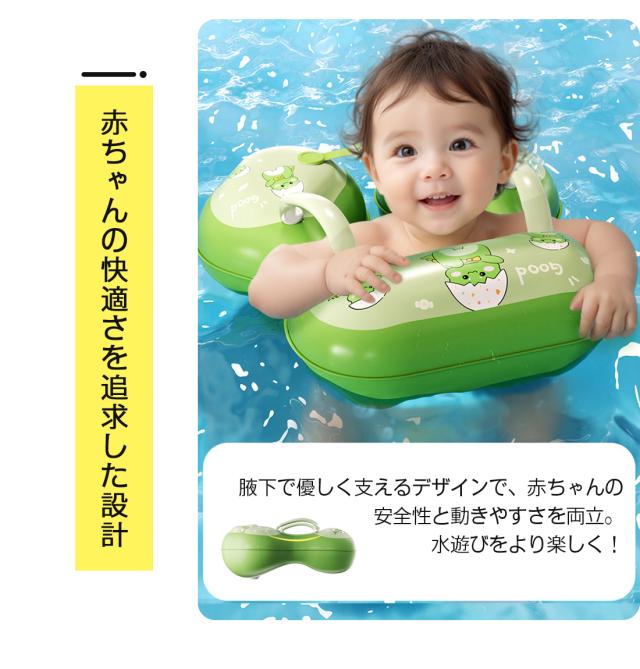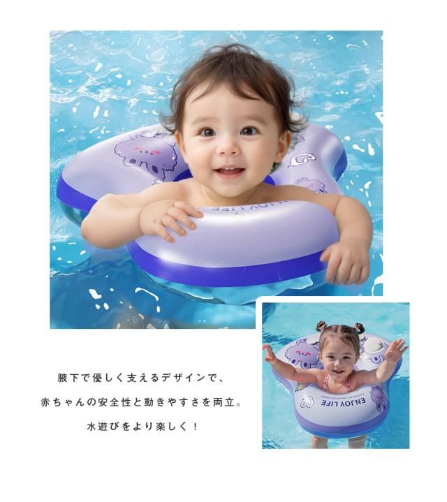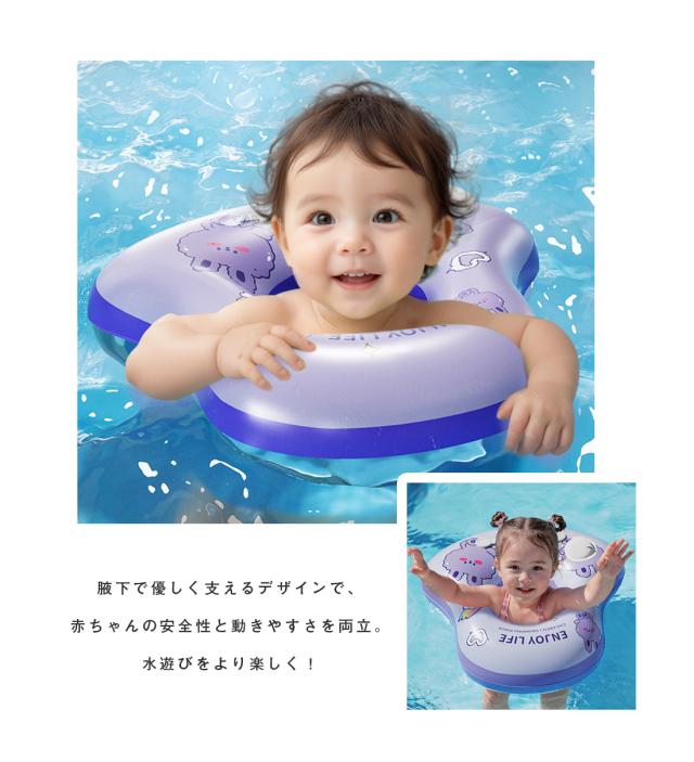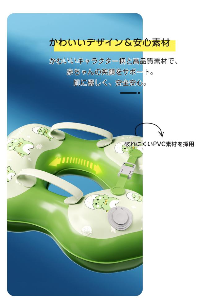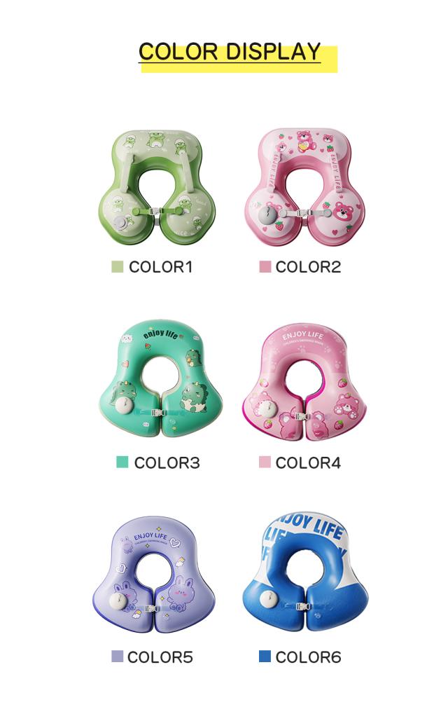 このベビー用首浮き輪は赤ちゃんが水慣れに、運動能力やバランス感覚の発達促進に、夜泣き対策に役たちます。