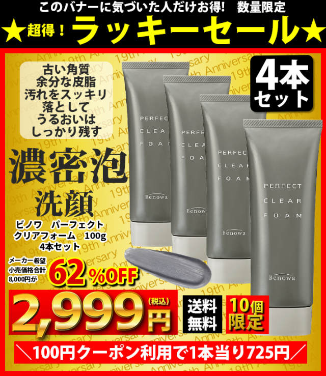 ラッキーセール 濃密泡洗顔 4本セット 紀州備長炭配合 ビノワ パーフェクトクリアフォーム 100g WN50890