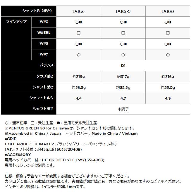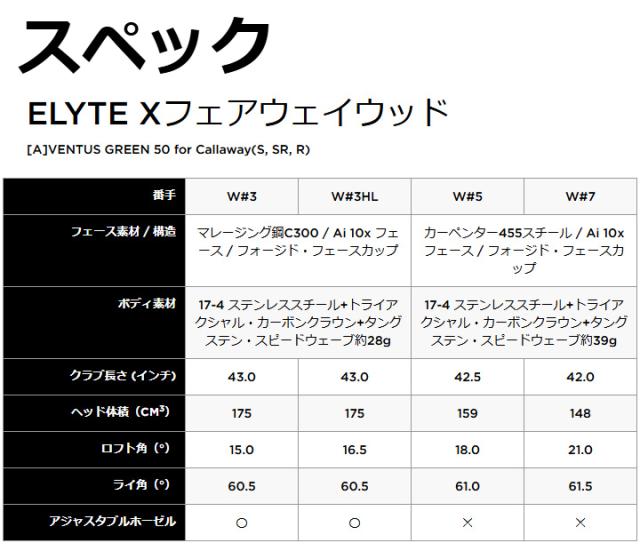 【2025モデル】キャロウェイ ELYTE X エリート エックス フェアウェイウッド シャフト:VENTUS GREEN 50 for Callaway ノーマル カーボン 日本正規品 Callaway