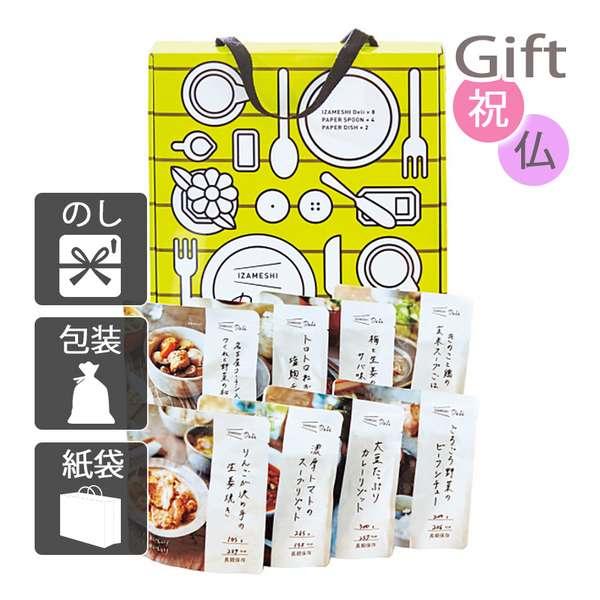 味にこだわった保存食・イザメシDeliと紙皿、スプーンが同梱されたセットです。箱は簡易テーブルとしてご使用いただけます!自宅や会社での備蓄用としてはもちろん、お世話になっている方へのギフトとしてもオススメです!