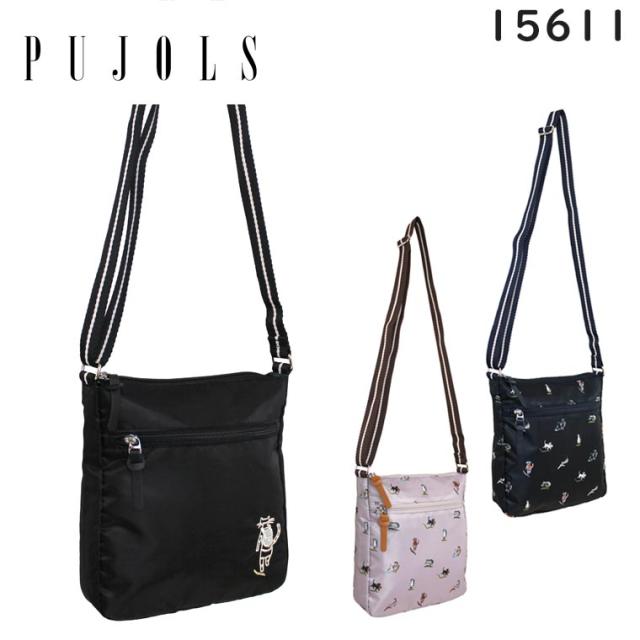 エース PUJOLS ニャンズトリップ2 横型ショルダーバッグ 小寸 猫しっぽチャーム付き 猫柄プリント 軽量カジュアルバッグ ACE 15612