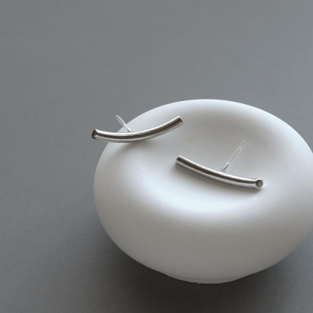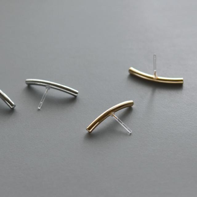 緩やかなカーブが効いたメタルバーの樹脂ピアスです。